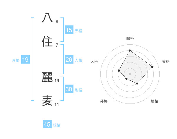 八住 麗麦さんを姓名の画数から五運を鑑定