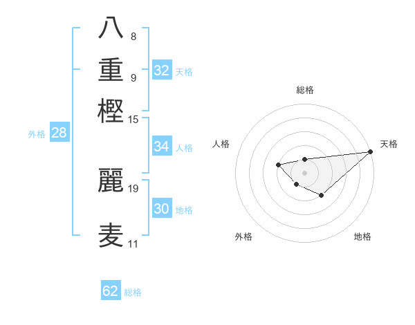 八重樫 麗麦さんを姓名の画数から五運を鑑定