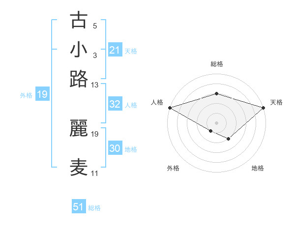 古小路 麗麦さんの天格は21画の5点!
