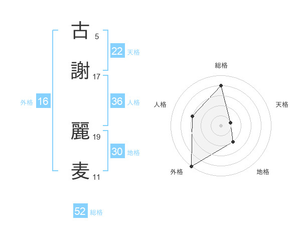 古謝 麗麦さんを姓名の画数から五運を鑑定
