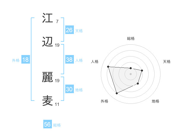 江辺 麗麦さんを姓名の画数から五運を鑑定