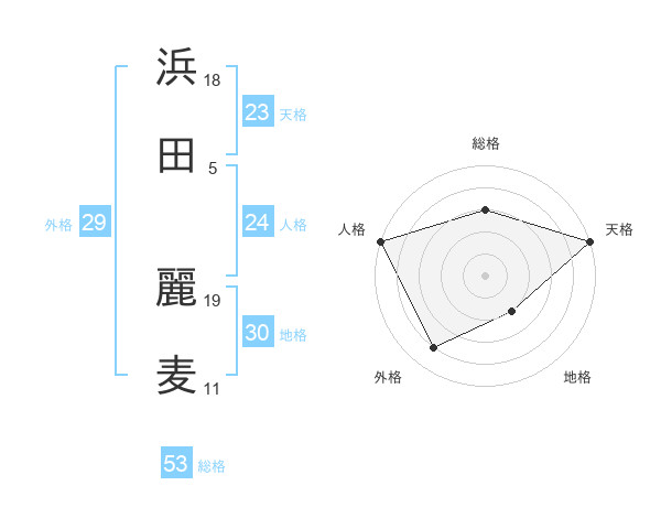 浜田 麗麦さんを姓名の画数から五運を鑑定