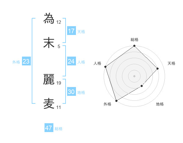 為末 麗麦さんの総格は47画の5点!