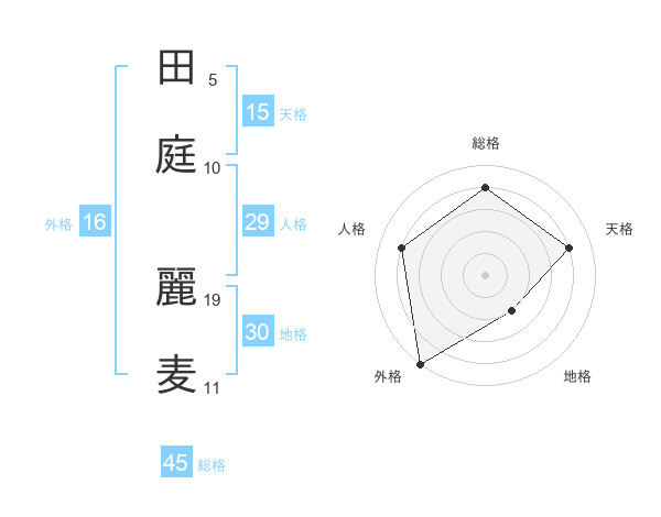 田庭 麗麦さんを姓名の画数から五運を鑑定