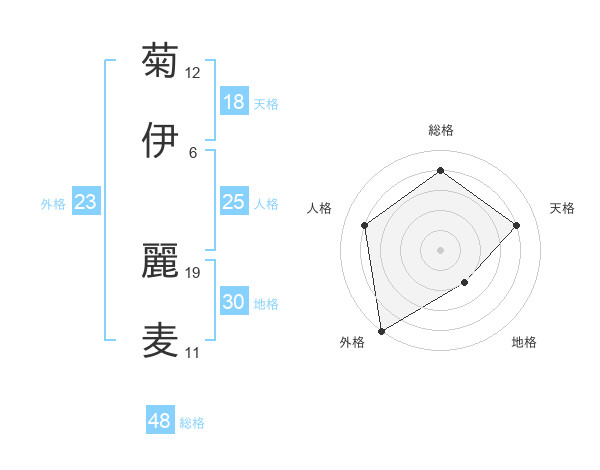 菊伊 麗麦さんを姓名の画数から五運を鑑定