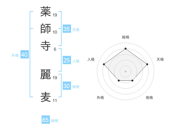 薬師寺 麗麦さんの総格は65画の4点!