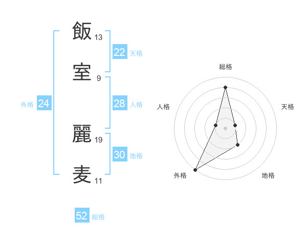 飯室 麗麦さんの総格は52画の4点!