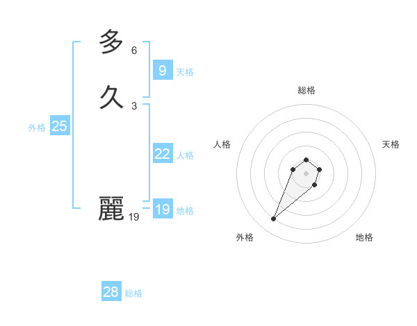 多久 麗さんの外格は25画の4点!