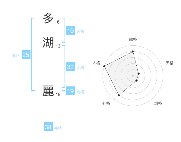 多湖 麗さんの天格は19画の1点!
