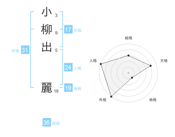 小柳出 麗さんを姓名の画数から五運を鑑定