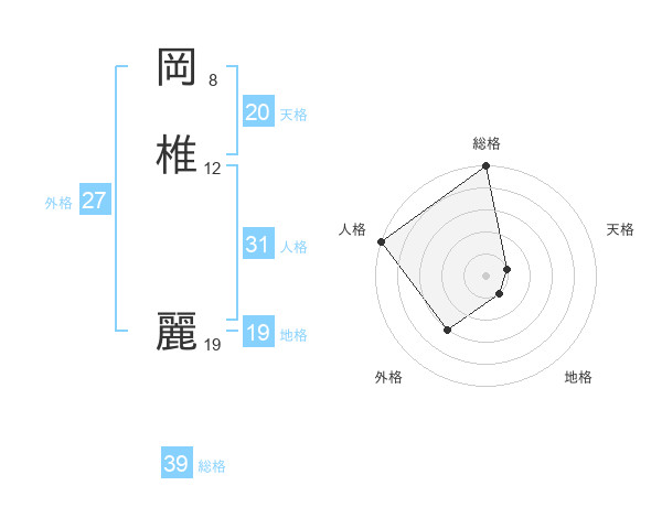 岡椎 麗さんの総格は39画の5点!