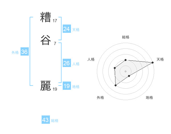糟谷 麗さんの総格は43画の2点!