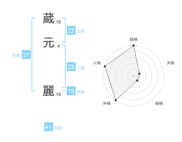 蔵元 麗さんの外格は37画の5点!