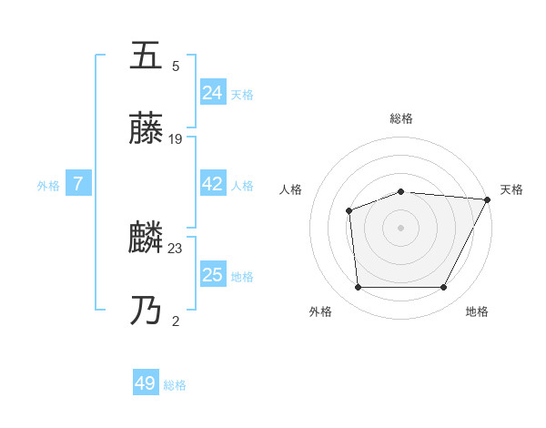 五藤 麟乃さんの天格は24画の5点!