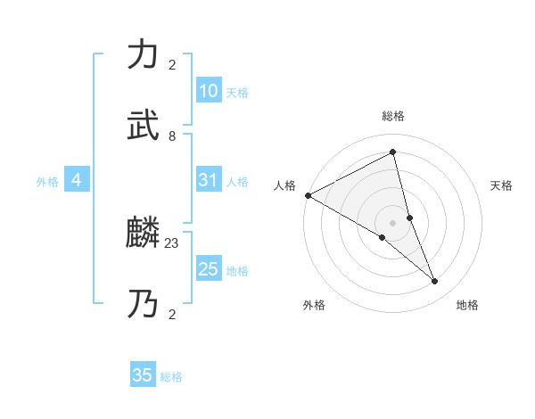 力武 麟乃さんの総格は35画の4点!