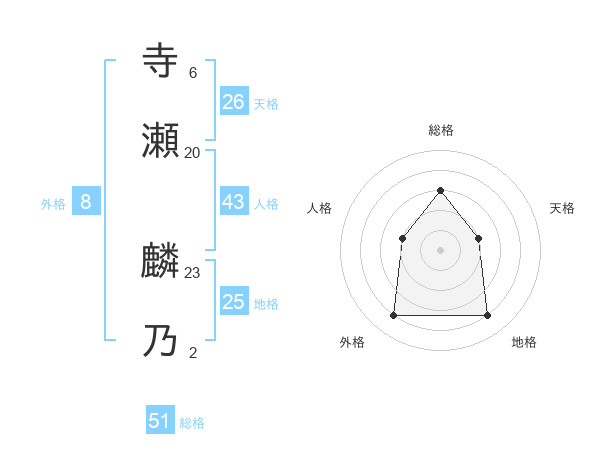 寺瀬 麟乃さんを姓名の画数から五運を鑑定