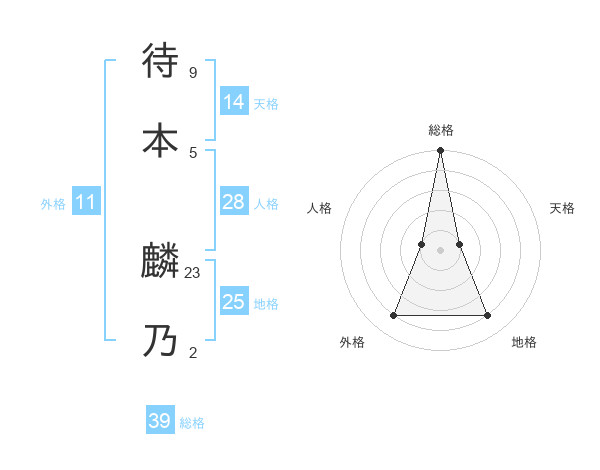 待本 麟乃さんを姓名の画数から五運を鑑定