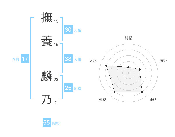 撫養 麟乃さんの外格は17画の4点!