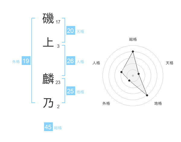 磯上 麟乃さんを姓名の画数から五運を鑑定