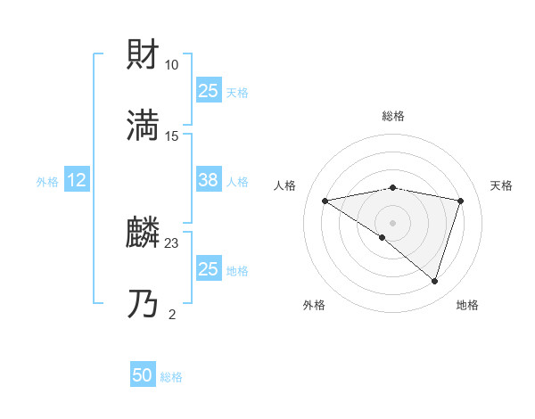 財満 麟乃さんの総格は50画の2点!