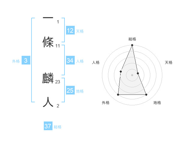 一條 麟人さんの総格は37画の5点!
