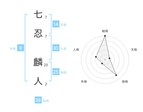 七忍 麟人さんの総格は39画の5点!