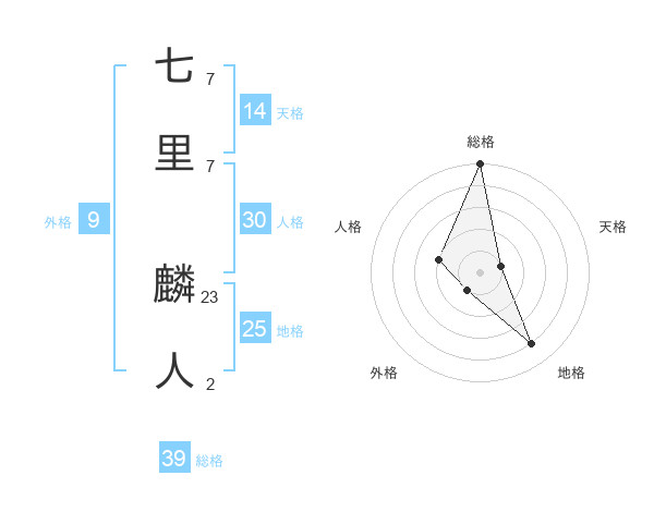 七里 麟人さんの総格は39画の5点!