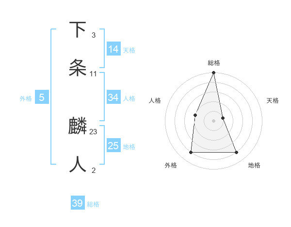 下条 麟人さんの総格は39画の5点!