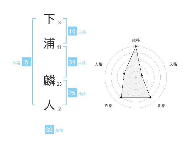下浦 麟人さんを姓名の画数から五運を鑑定