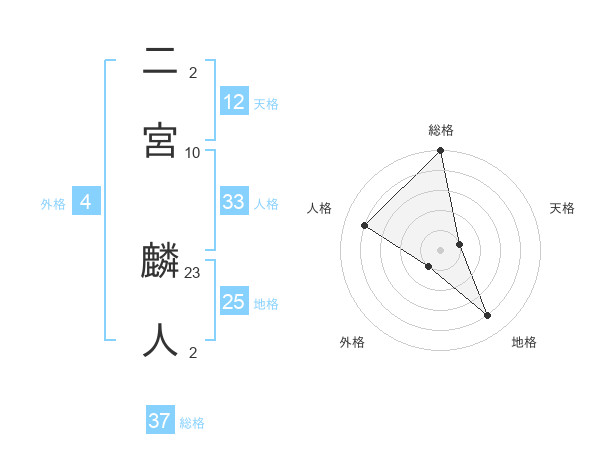 二宮 麟人さんを姓名の画数から五運を鑑定