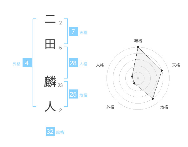 二田 麟人さんの総格は32画の5点