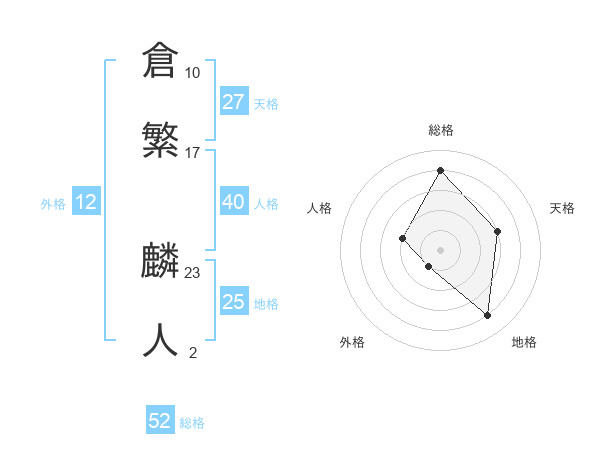 倉繁 麟人さんを姓名の画数から五運を鑑定