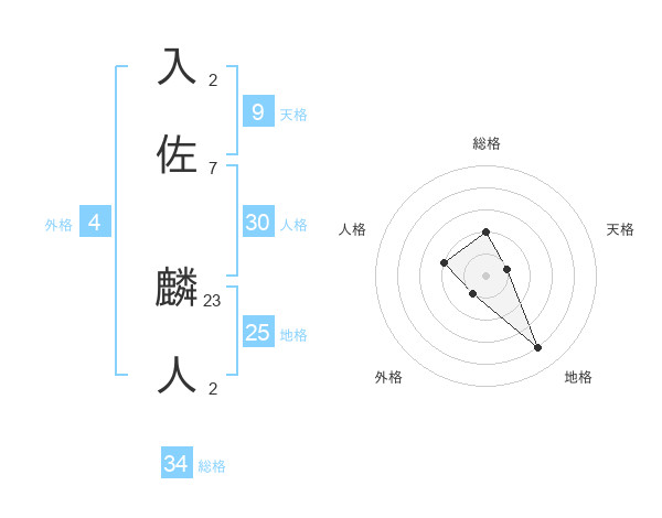 入佐 麟人さんを姓名の画数から五運を鑑定