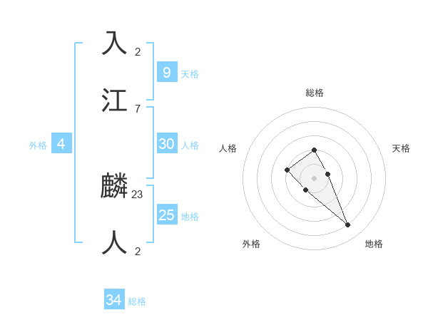 入江 麟人さんの総格は34画の2点