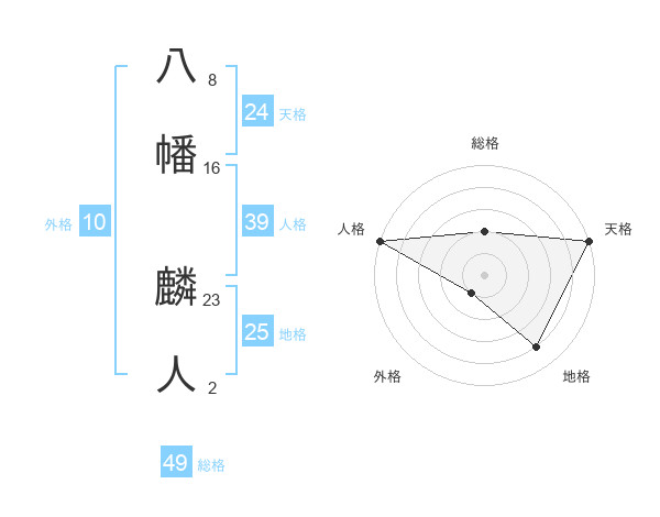 八幡 麟人さんの総格は49画の2点