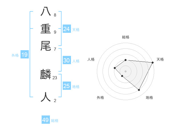 八重尾 麟人さんの総格は49画の2点!