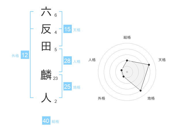 六反田 麟人さんの天格は15画の4点!