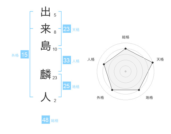 出来島 麟人さんの総格は48画の4点!