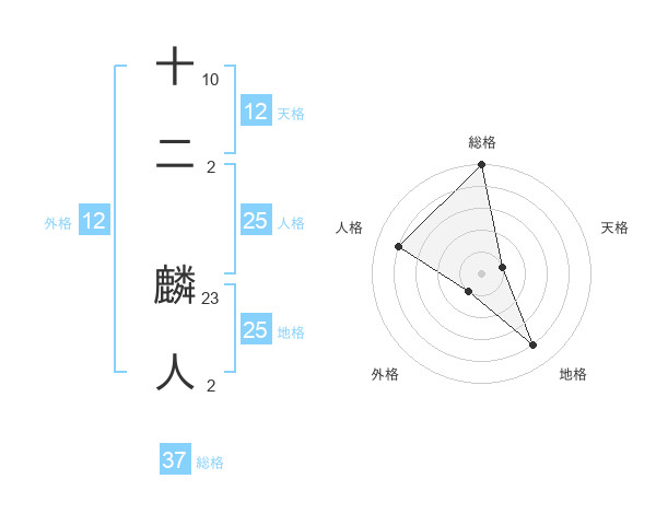 十二 麟人さんの総格は37画の5点!