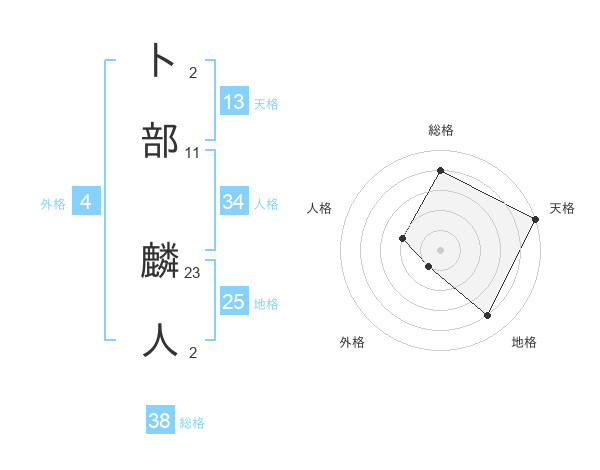 卜部 麟人さんの総格は38画の4点!