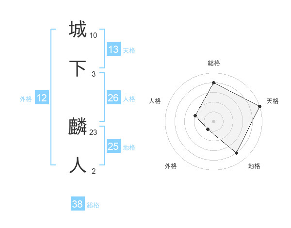 城下 麟人さんの天格は13画の5点!