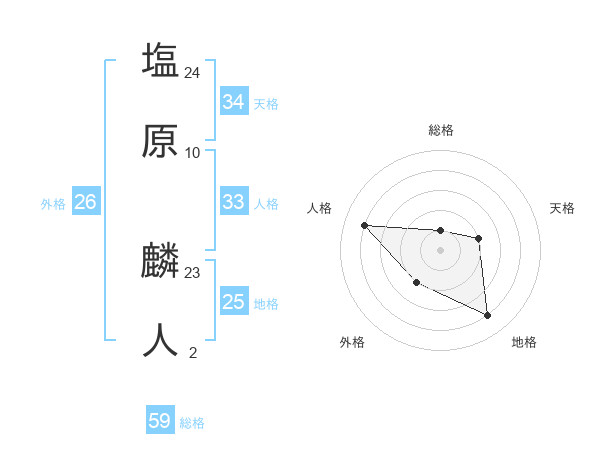 塩原 麟人さんの総格は59画の1点!