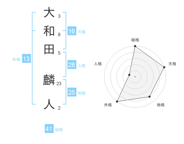 大和田 麟人さんを姓名の画数から五運を鑑定