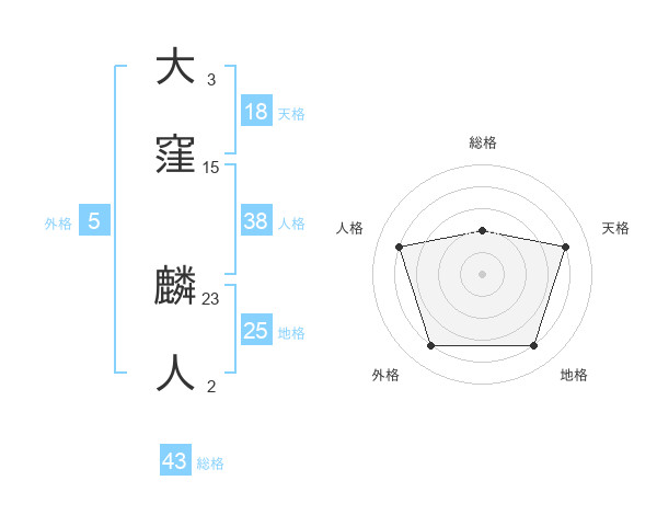 大窪 麟人さんを姓名の画数から五運を鑑定