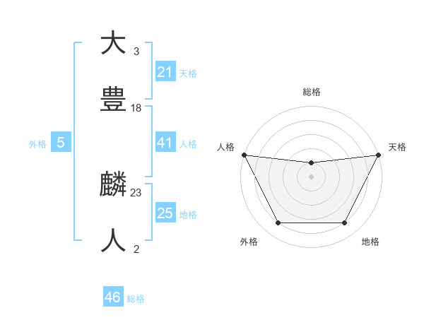 大豊 麟人さんの天格は21画の5点!