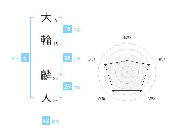 大輪 麟人さんを姓名の画数から五運を鑑定