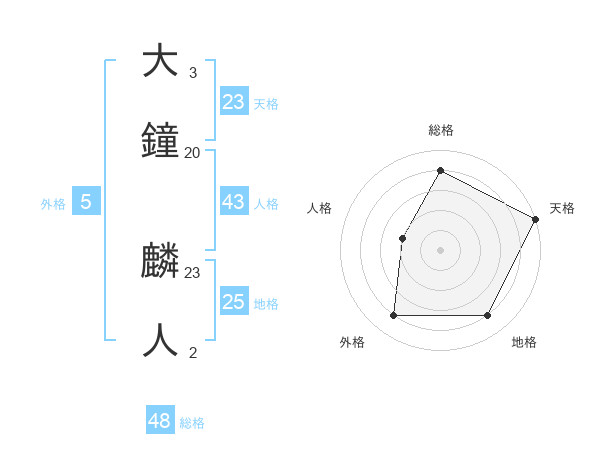 大鐘 麟人さんの天格は23画の5点!