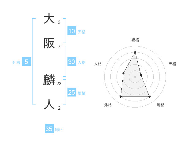大阪 麟人さんの総格は35画の4点!