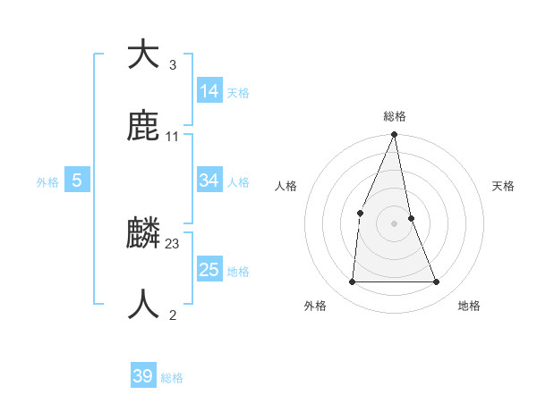 大鹿 麟人さんを姓名の画数から五運を鑑定
