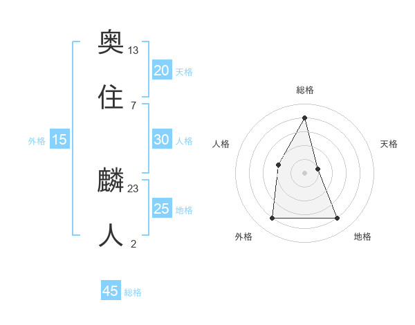 奥住 麟人さんの総格は45画の4点!